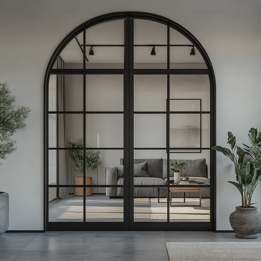 Een stalen deur met een boog voegt niet alleen karakter en elegantie toe aan een interieur, maar creëert ook een gevoel van hoogte en ruimtelijkheid door de zachte, gebogen vorm.